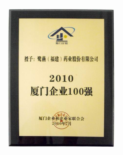 2010年6月28日,“2010廈門企業100強”榜單正式出爐,鷺燕(福建)集團依托穩健經營,實現經營業績穩步發展,位列榜單第37位,同比去年排名前進12位。自2006年參加廈門企業百強評選以來,鷺燕集團已連續5年位列百強企業榜單。