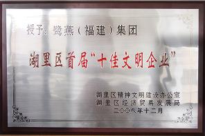 據悉,在湖里區文明辦開展的文明企業創建活動中,鷺燕(福建)集團有限公司榮膺湖里區首屆“十佳文明企業”。